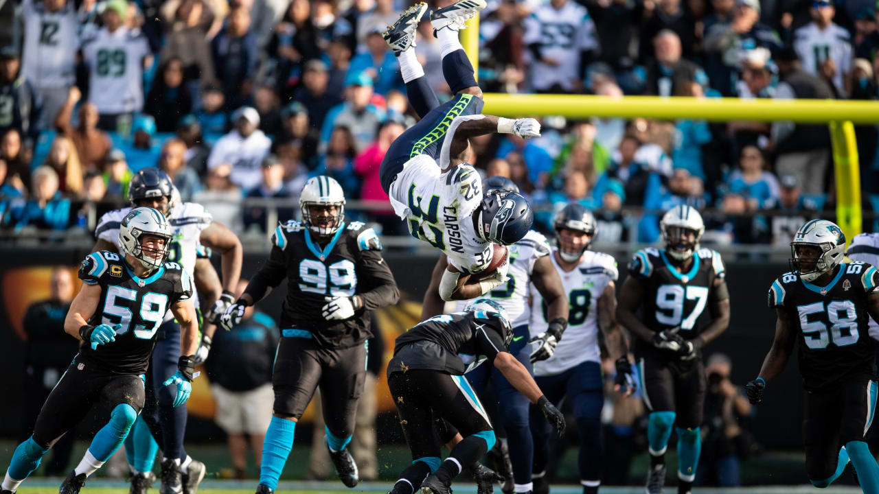 Chris Carson Flip Gif - Nfl Games Today Week 12 Scores Highlights Updates Schedule Chris Carson Pulls Off Wild Front Flip Hurdle Tell My Sport